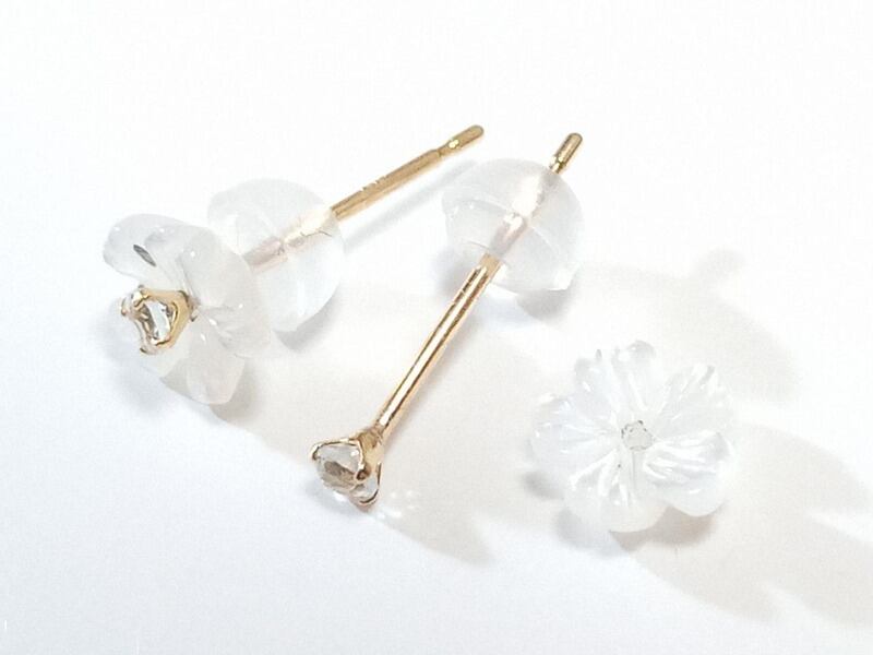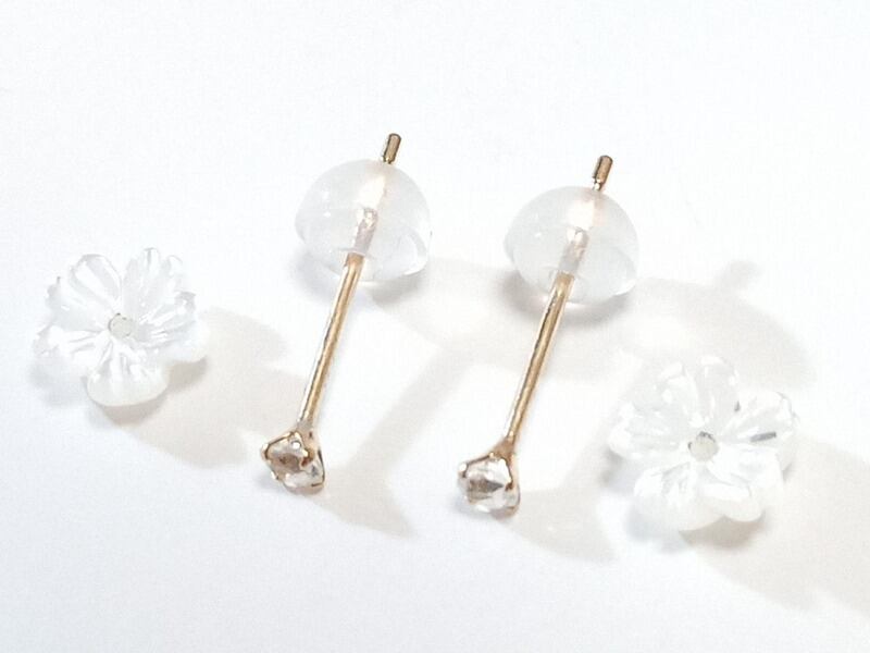 花びらのシェルを別の小さめのスタッドピアスに通して