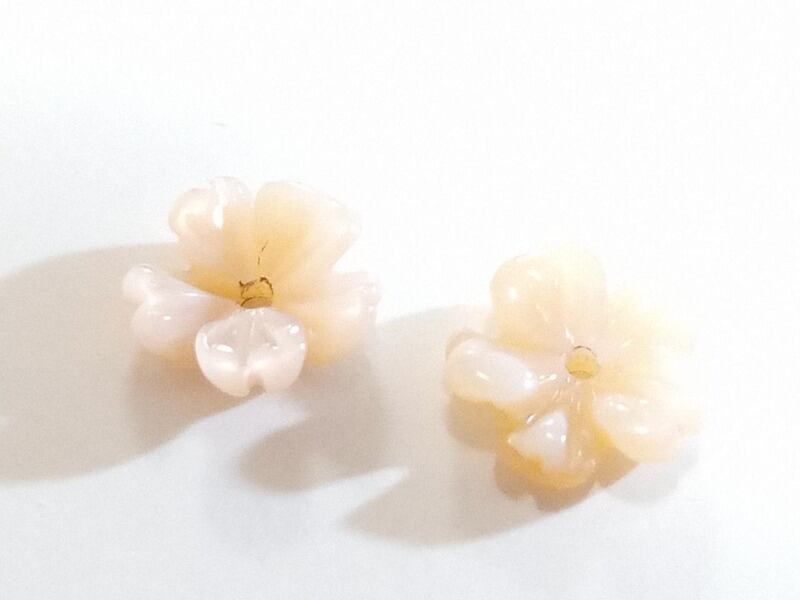 花びらのシェルを別の小さめのスタッドピアスに通して