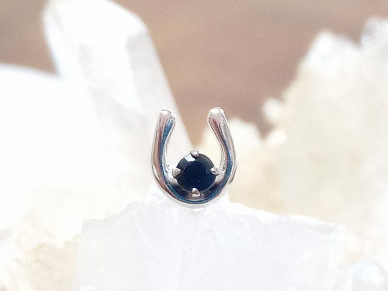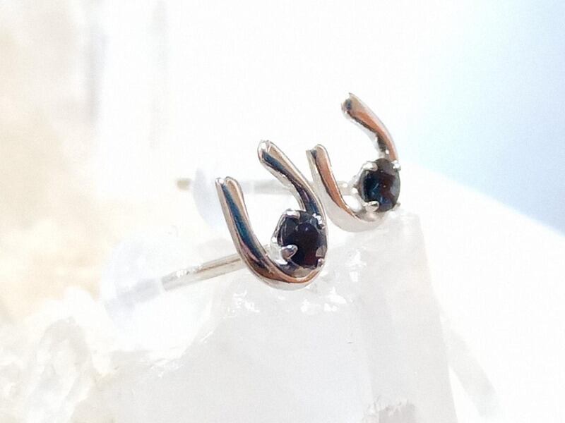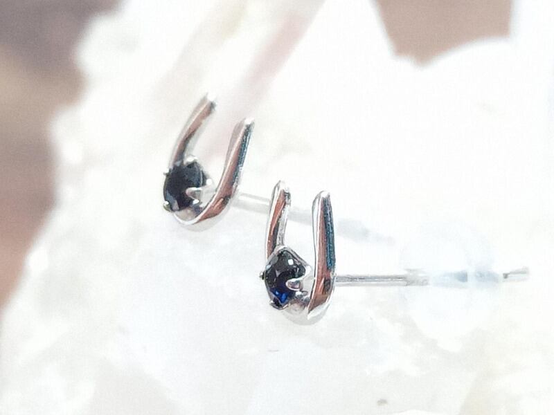 10金(K10、10K) サファイア 馬蹄ホースシュー ピアス プレゼントにもどうぞ 小箱、La Terre表参道のショップバッグ付きです。レディース アクセサリー