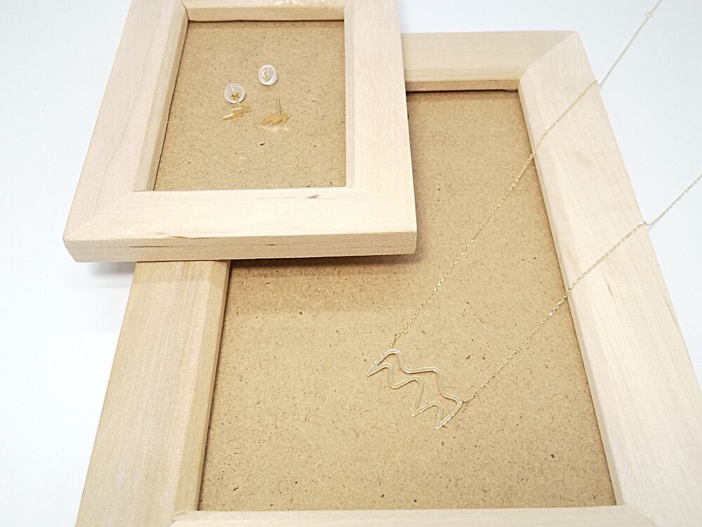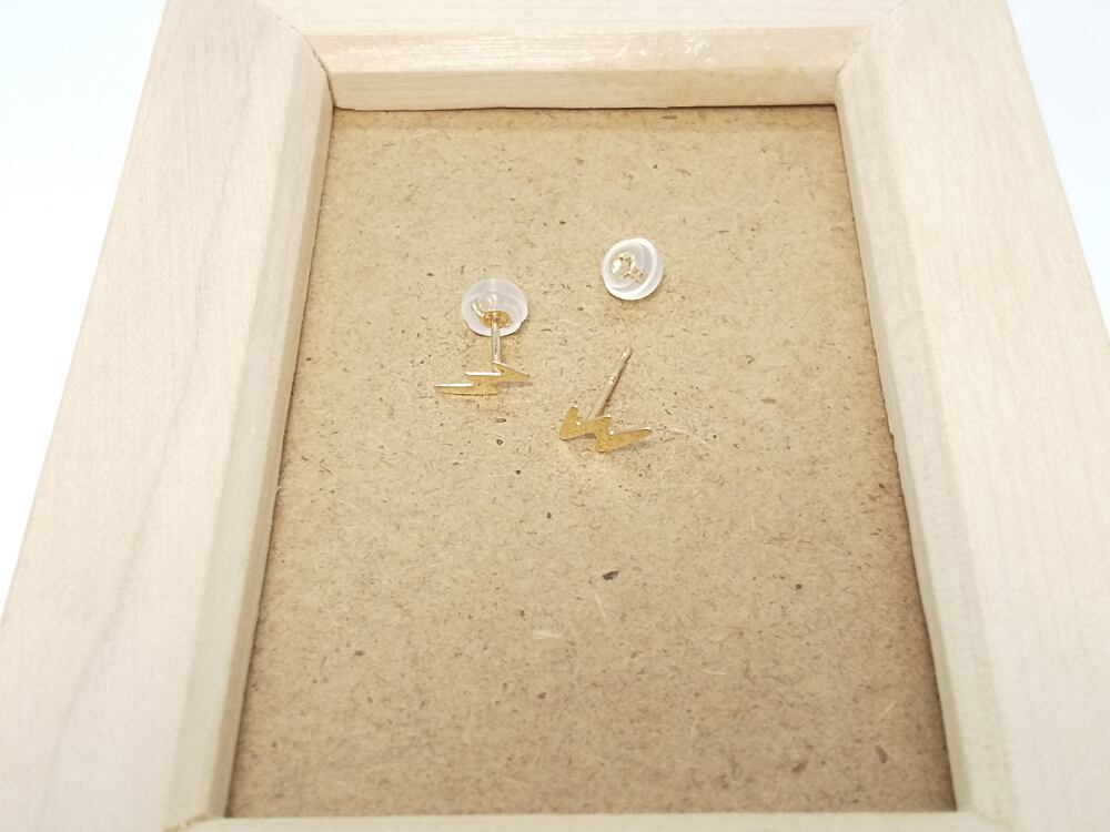 細い線でシンプルにデザインしました。 小さいデザインなので、ペンダントネックレスと一緒に着けるといいかも。 全長約0.9cm。金具入シリコンキャッチ。材質はK10です。