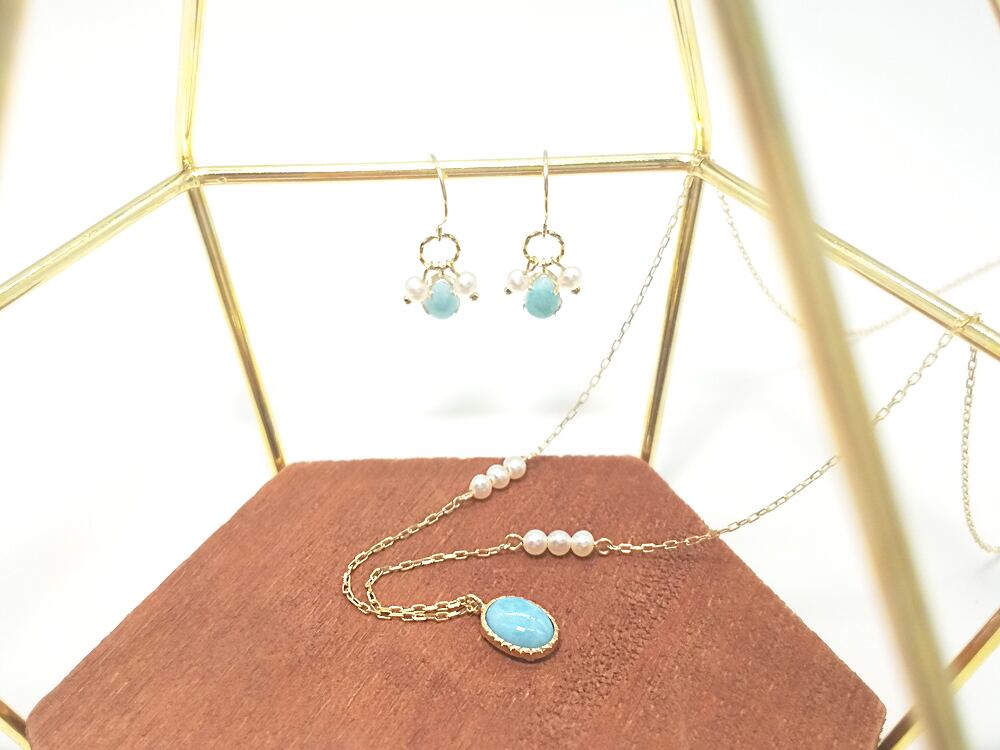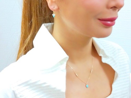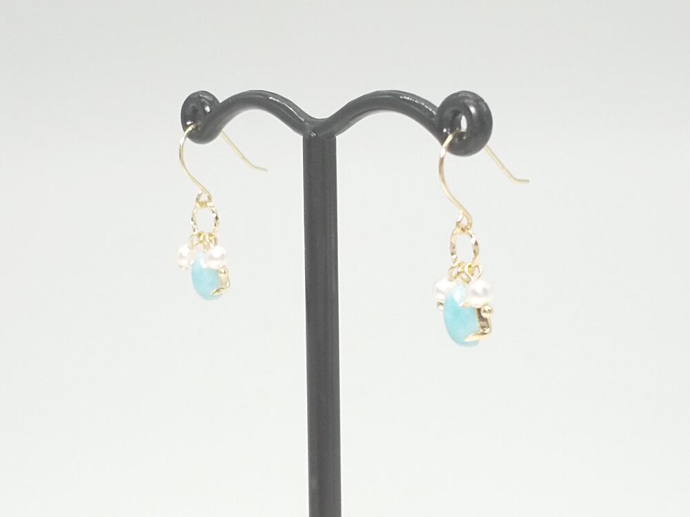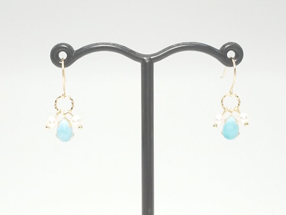 K10 YG ラリマー 淡水パール 天使 ピアス(愛と平和の石)プレゼントにもどうぞ 小箱、La Terre表参道のショップバッグ付きです。レディース アクセサリー