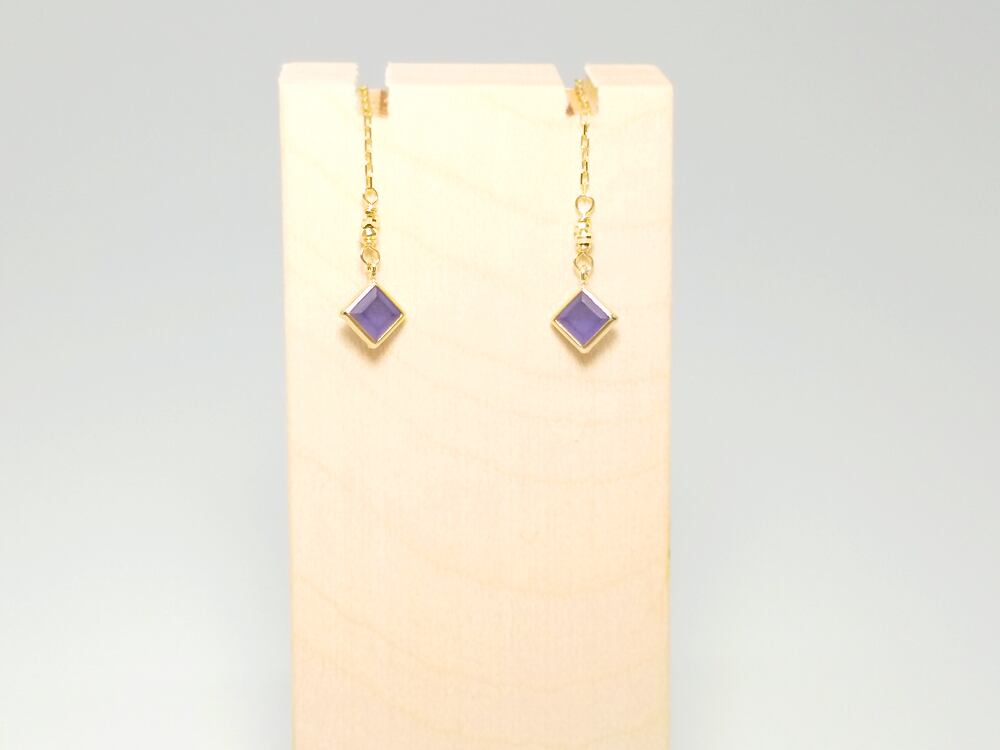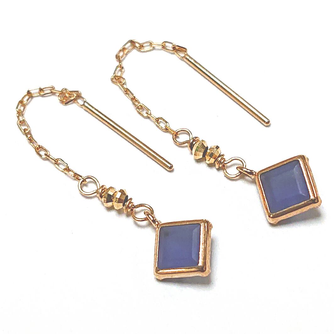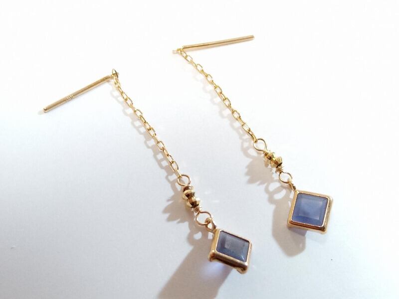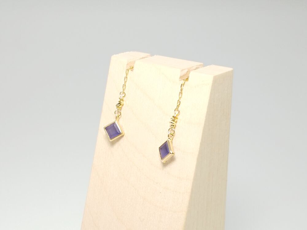 10金(K10、10K) YG アイオライト ロング ピアス(羅針盤とも言われ打開策を見出す石)プレゼントにもどうぞ 小箱、La Terre表参道のショップバッグ付きです。レディース アクセサリー