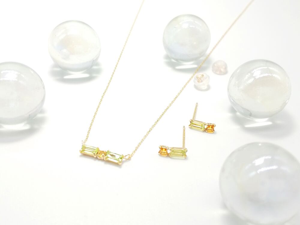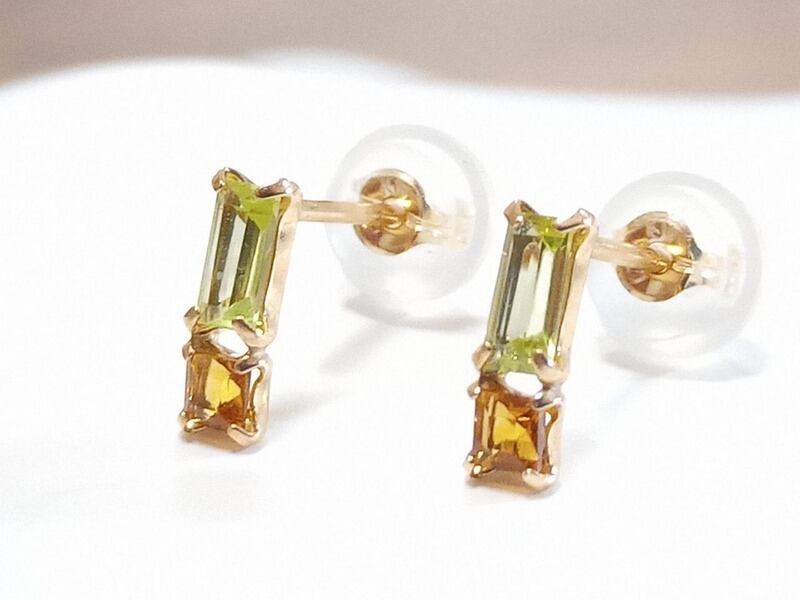 K10 YG ペリドット シトリン ロング ピアス(太陽のパワー神秘の石)プレゼントにもどうぞ 小箱、La Terre表参道のショップバッグ付きです。レディース アクセサリー